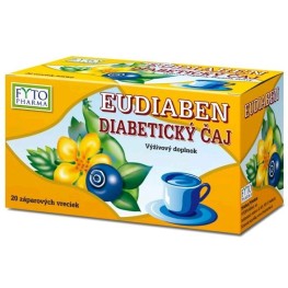 Bylinný čaj PRO DIABETIKY se skořicí EUDIABEN, Fytopharma (Skořicovník čínský Cinnamomum cassia - kůra, Fazol obecný Phaseolus vulgaris - plod, Brusnice borůvka Vaccinium myrtillus - nať, Jestřabina lékařská Galega officinalis - nať, Čekanka obecná Cichorium intybus - kořen).
