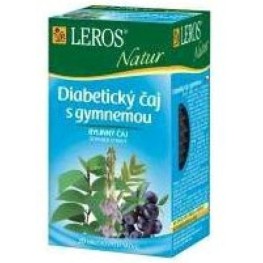 Diabetický čaj s gymnemou, Leros, 20 sáčků (Brusnice borůvka Vaccinium myrtillus - nať (30 %), Brusnice borůvka Vaccinium myrtillus - plod (10 %), Fazol obecný Phaseolus vulgaris - lusk (10 %), Gymnema lesní Gymnema sylvestre - list (5%), Jestřabina lékařská Galega officinalis - nať (15 %), Lékořice lysá Glycyrrhiza glabra - kořen