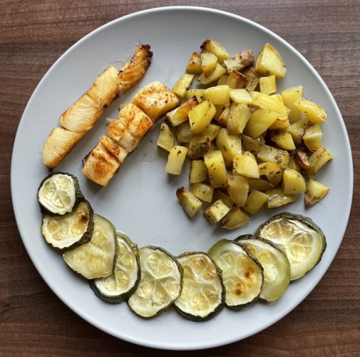 Halibut s pečenou cuketou a bramborem sestavte si dietu v našem fotojídelníčku
