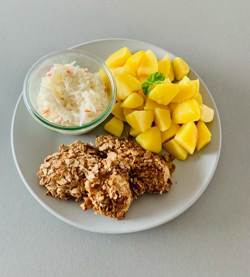 Kuřecí stripsy se salátem Coleslaw a vařeným bramborem sestavte si dietu v našem fotojídelníčku