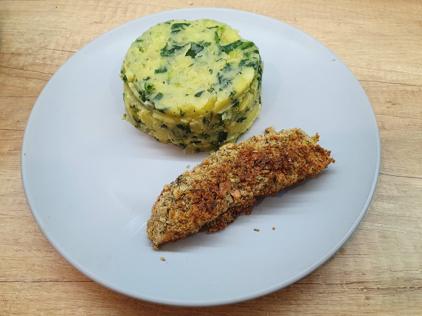 Losos v bylinkové krustě se špenátovými šťouchanými brambory sestavte si dietu v našem fotojídelníčku