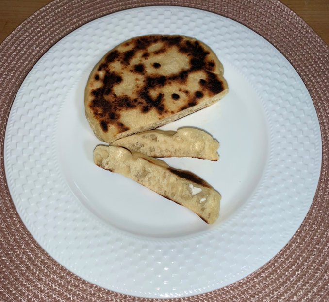 Ve větší míse smícháme všechny suché suroviny, tzn. obě mouky, droždí, cukr a sůl. Poté přidáme teplé mléko a olej a začneme hníst. Výborně nám pomůže kuchyňský robot, ve kterém by měl procese hnětení trvat alespoň 5 minut. Takto máme těsto připravené na kynutí. Mísu dáme na teplé místo (např. k radiátoru) a necháme cca hodinu kynout. Následně těsto přesuneme na pomoučněný vál a rozdělíme ho na 5 stejně velkých částí. Každou část vyválíme do kulaté placičky vysoké necelý centimetr. Připravíme si pánev a rozehřejeme ji. Placičky na ní nasucho z obou stran opečeme. Můžeme je péct také v troubě na co nejvyšší teplotní stupeň po dobu asi 5-10 minut. Hmotnost jednoho pita chleba je cca 70 g.