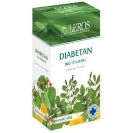 DIABETAN, Leros, 20sášků (Borůvka černá Vaccinium myrtillus - nať 0,150 g, Fazol obecný Phaseolus vulgaris - plod 0,170 g, Fenykl obecný Foeniculum vulgare - plod 0,080 g, Jestřabina lékařská Galega officinalis - nať 0,120 g, Lékořice lysá Glycyrrhiza glabra - kořen 0,020 g, Lopuch větší Arctium lappa - kořen 0,050 g, Ostružina Rubus fruticosus - list 0,080 g, Truskavec ptačí Polygonum aviculare - nať 0,100 g, Smetanka lékařská Taraxacum officinale - kořen s natí 0,080 g, Šalvěj lékařská Salvia officinalis - nať 0,150 g.