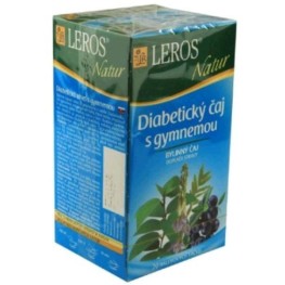 Diabetický čaj s gymnemou, Leros, 20 sáčků (Borůvka černá Vaccinium myrtillus - nať (30 %), Borůvka černá Vaccinium myrtillus - plod (10 %), Fazol obecný Phaseolus vulgaris - lusk (10 %), Gymnema lesní Gymnema sylvestre - list (5%), Jestřabina lékařská Galega officinalis - nať (15 %), Lékořice lysá Glycyrrhiza glabra - kořen