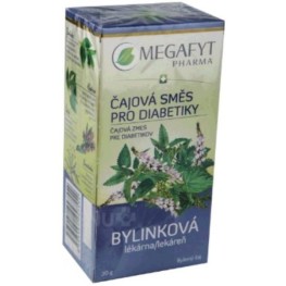 ČAJOVÁ SMĚS PRO DIABETIKY, Megafyt (Borůvka černá Vaccinium myrtillus - list, Fazol obecný Phaseolus vulgaris - lusk, Jestřabina lékařská Galega officinalis - nať, Kopřiva dvoudomá Urtica dioica - list, Smetanka lékařská Taraxacum officinale - kořen, Šalvěj lékařská Salvia officinalis - list,),