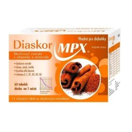 Diaskor MPX, Medaprex 60 cps. (Skořice Cinnamomum cassia extrakt 300 mg, Chrom - 25 mg, Hořčík – 38 mg, Zinek- 8 mg , Kyselina alfa-lipoová - 80 mg, vitamíny B1 (tiamin) - 3 mg, B2 (riboflavin) – 2 mg, B3 (niacin) – 7 mg, B6 (pyridoxin) – 2 mg, C – 150 mg, E – 20 mg v 1 kapsli)
