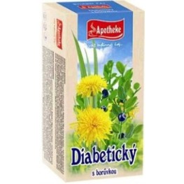 Diabetický čaj, Apotheke (Borůvka černá Vaccinium myrtillus - list, Bříza bělokorá Betula pendula - list, Kopřiva dvoudomá Urtica dioica - nať, Puškvorec obecný Acorus calamus - kořen, Smetanka lékařská Taraxacum officinale - kořen).