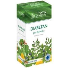 DIABETAN, Leros, 20sášků (Borůvka černá Vaccinium myrtillus - nať 0,150 g, Fazol obecný Phaseolus vulgaris - plod 0,170 g, Fenykl obecný Foeniculum vulgare - plod 0,080 g, Jestřabina lékařská Galega officinalis - nať 0,120 g, Lékořice lysá Glycyrrhiza glabra - kořen 0,020 g, Lopuch větší Arctium lappa - kořen 0,050 g, Ostružina Rubus fruticosus - list 0,080 g, Truskavec ptačí Polygonum aviculare - nať 0,100 g, Smetanka lékařská Taraxacum officinale - kořen s natí 0,080 g, Šalvěj lékařská Salvia officinalis - nať 0,150 g).
